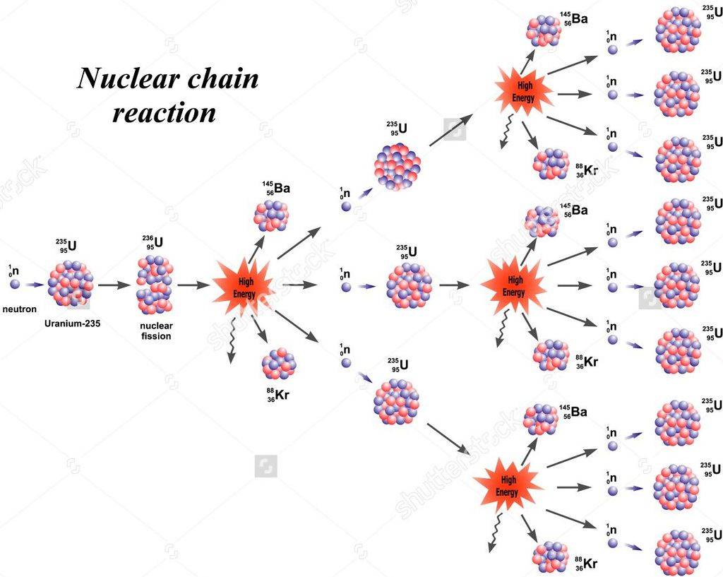 而且,这三个中子还可以继续撞击三个铀235原子核,形成9个中子,9个中子又可以撞击9个铀235原子核,形成27个中子…这个过程叫做链式反应。